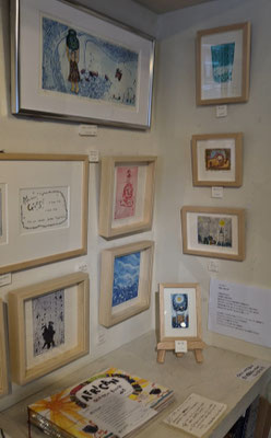 本展では、絵本原画と小品の展示の他にポストカードや絵本も展示、販売しております。
